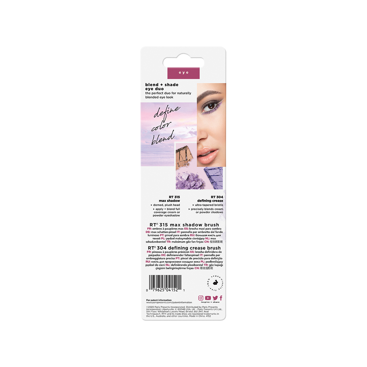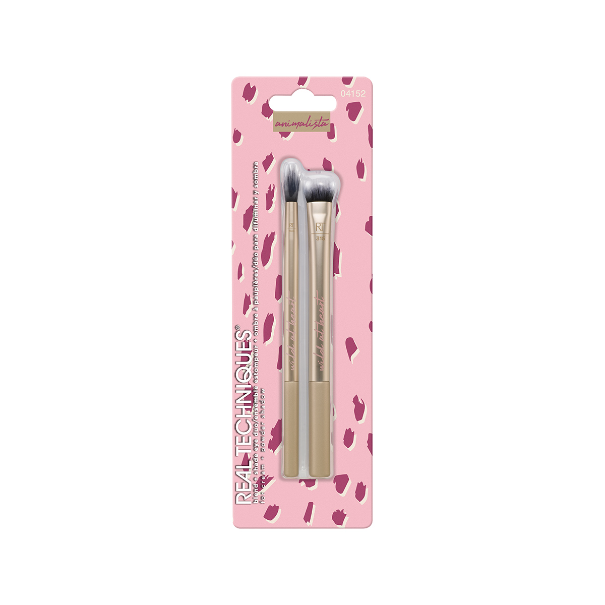 Real Techniques Animalista — cтильное дополнение вашего ежедневного ритуала в металлизированном корпусе. Идеальный дуэт для макияжа глаз — Animalista Eye Duo! В набор входят большая и маленькая кисть для нанесения теней — 315 Max Shadow Brush и 304 Defining Crease Brush. Кисть 315 Max Shadow Brush предназначена для нанесения базового оттенка на всё веко, маленькая кисть 304 Defining Crease Brush подходит для нанесения пигмента на подвижное веко и расстановки акцентов. Скошенная форма кистей повторяет контуры века, что облегчает нанесение и растушёвку продуктов. Кисть подходит для работы с кремовыми и рассыпчатыми тенями.